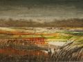 "Vanuit structuur en kleur werk ik naar een samengaan van deze elementen. Een zwak heimwee naar het landschap met al zijn onderwerpen blijft hierbij evident.