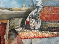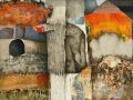 "Vanuit structuur en kleur werk ik naar een samengaan van deze elementen. Een zwak heimwee naar het landschap met al zijn onderwerpen blijft hierbij evident.